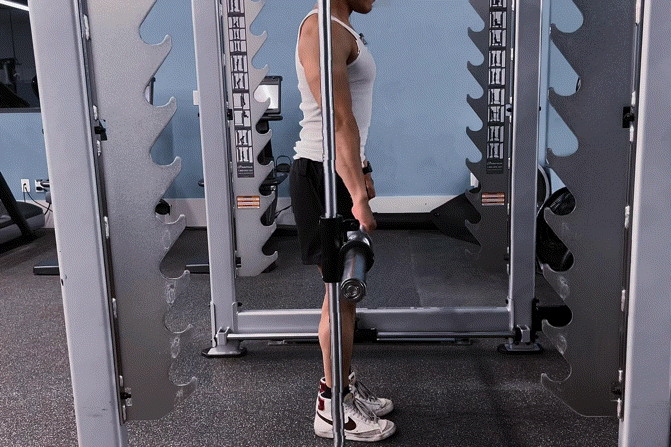 Grip bar slightly wider than shoulder width with an overhand grip